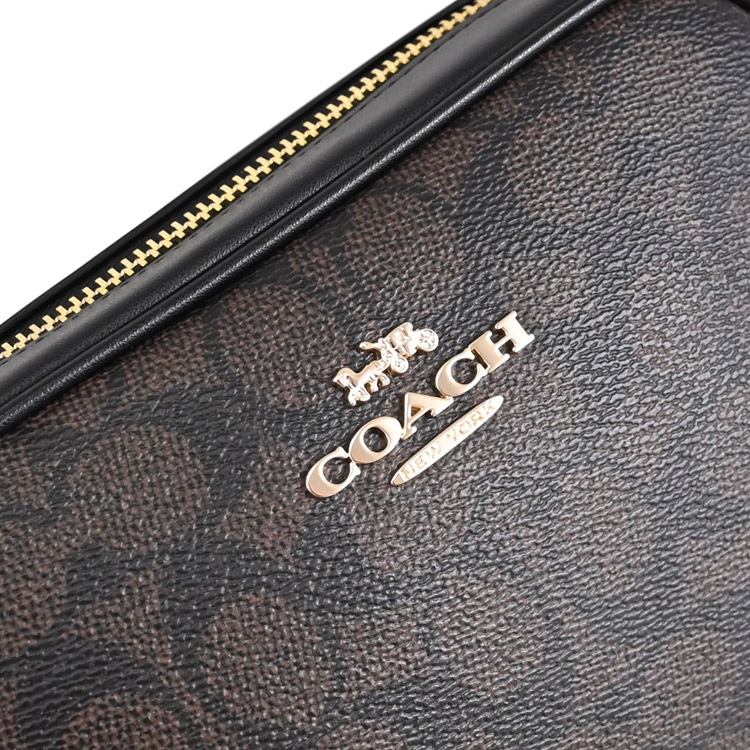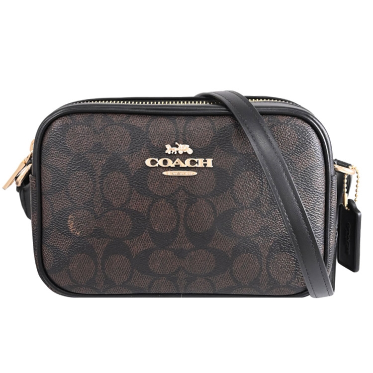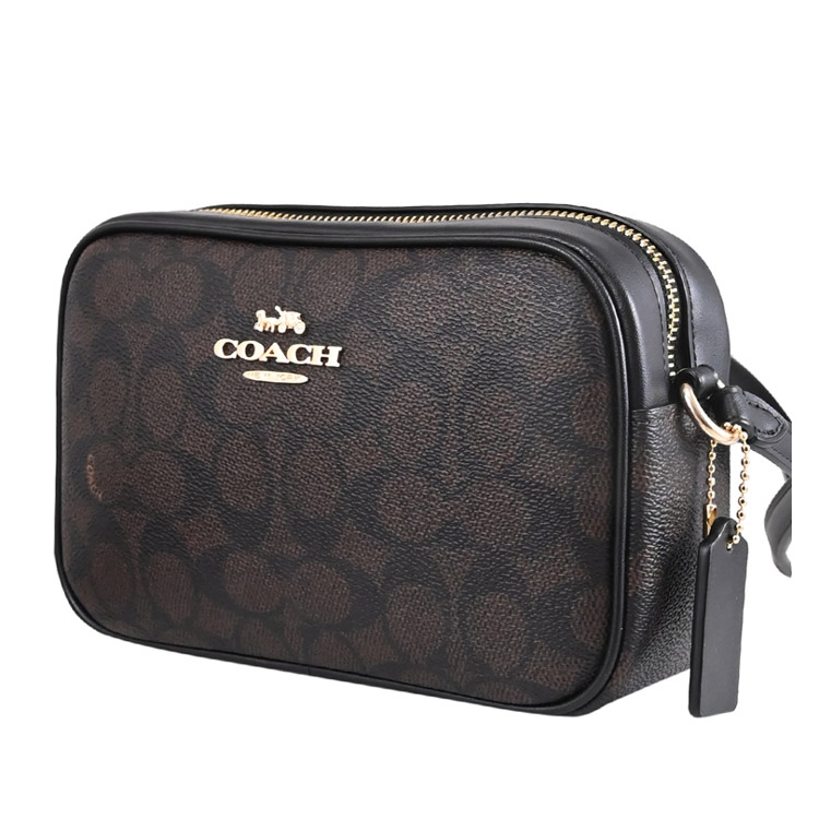 COACH MIN JMIE系列,金屬馬車LOGO,採用滿版印花塗層帆布拼接皮革製作而成,拉鍊開口安全收納