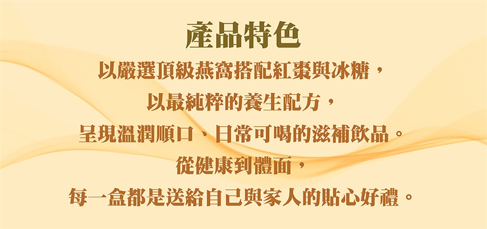 ◎因燕窩屬天然食材,故經燉煮會部份溶於液體中。且由於燕窩未經漂白,若有細燕毛或黑點等雜質,純屬自然現象,殘留萃取物且色澤加深則因天然萃取物燉煮所致,敬請安心飲用。