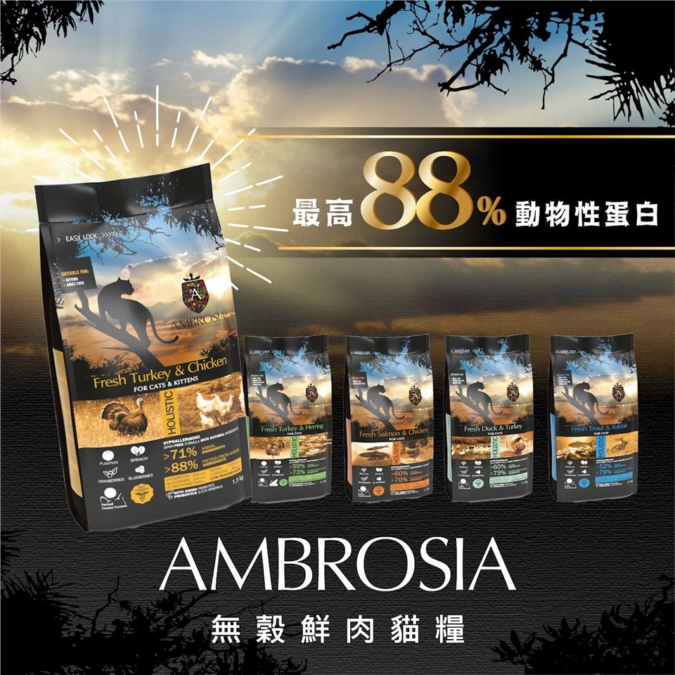 特色:安柏希雅新鮮火雞肉和雞肉配方混合了兩種來自新鮮火雞肉的動物蛋白質,還有乾燥雞肉和精選的水果蔬菜。這款寵糧適合所有貓的階段,從小貓到成貓都可以。它還含有益生元和益生菌,有助於幫助消化和維持免疫系統,還有軟骨素和葡萄糖胺,能保護關節,以及牛磺酸和左旋肉鹼,有助於大腦發展及維護心血管健康。