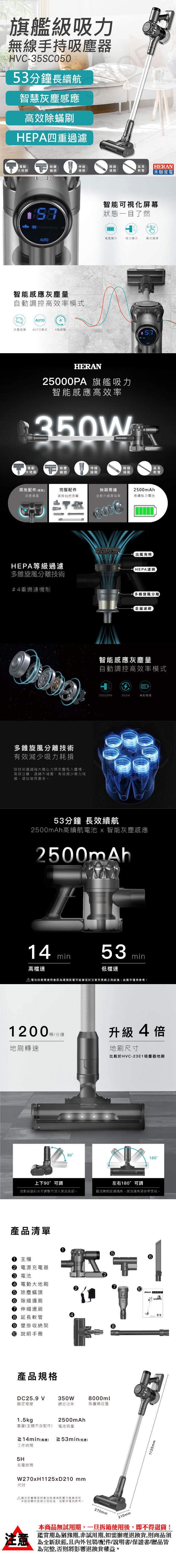 【禾聯HERAN】無線手持吸塵器 HVC-35SC050