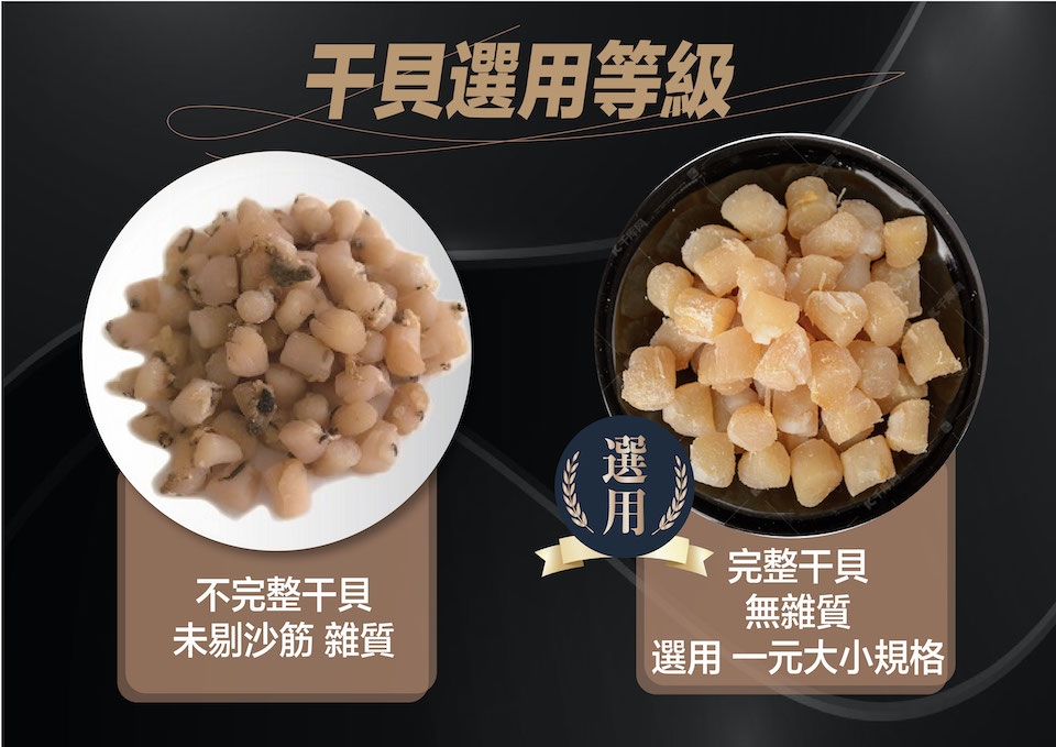 2、干貝色澤會依每批原料製成有所差異,請依實際商品為主
