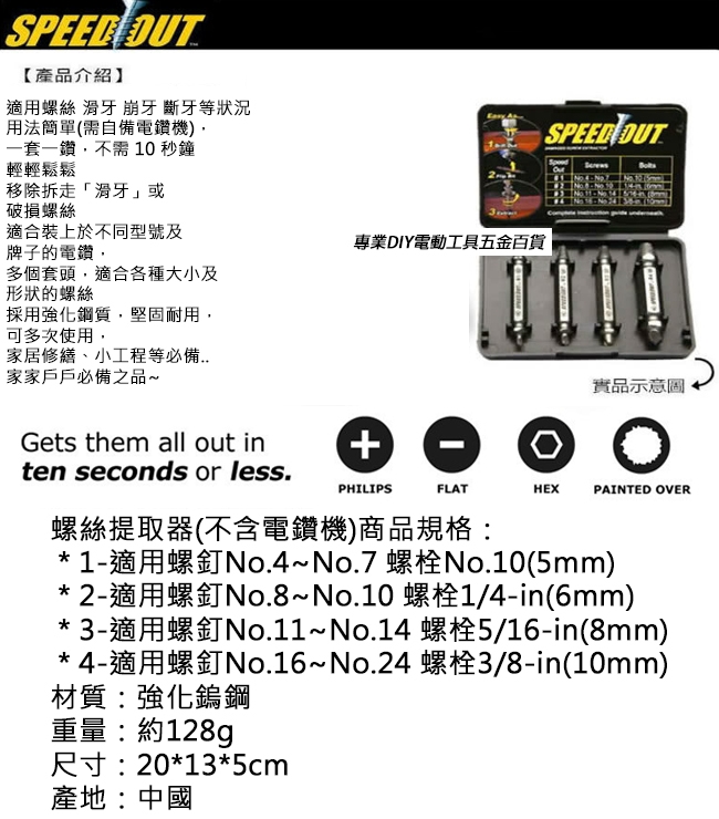 SpeedOut本質上是一個損壞的螺絲和螺栓拆除,