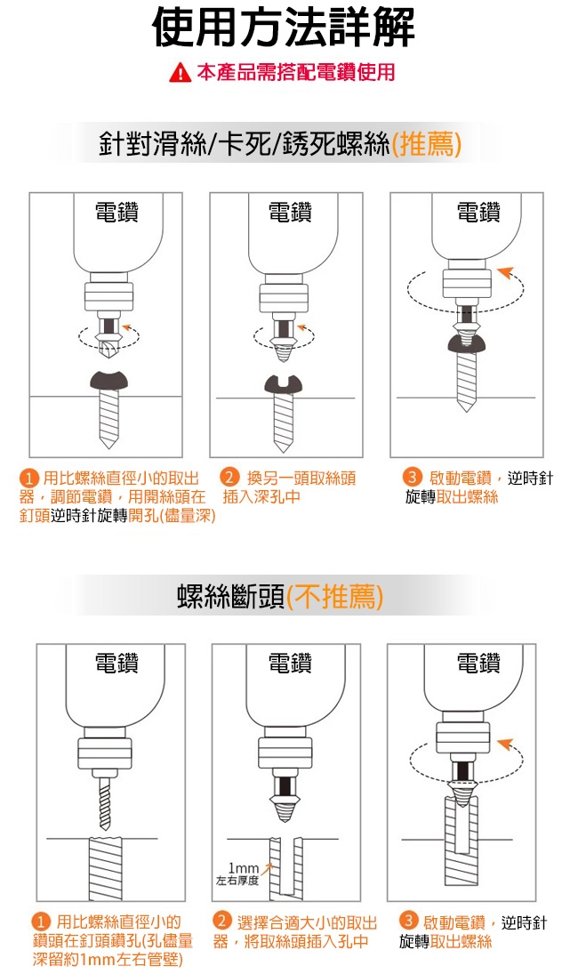 適用螺絲滑牙 崩牙 斷牙等狀況