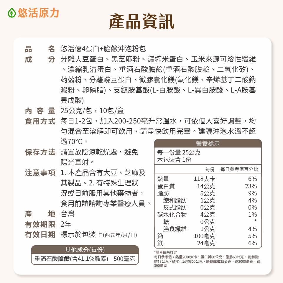 1. 本產品含有大豆、芝麻及其製品。