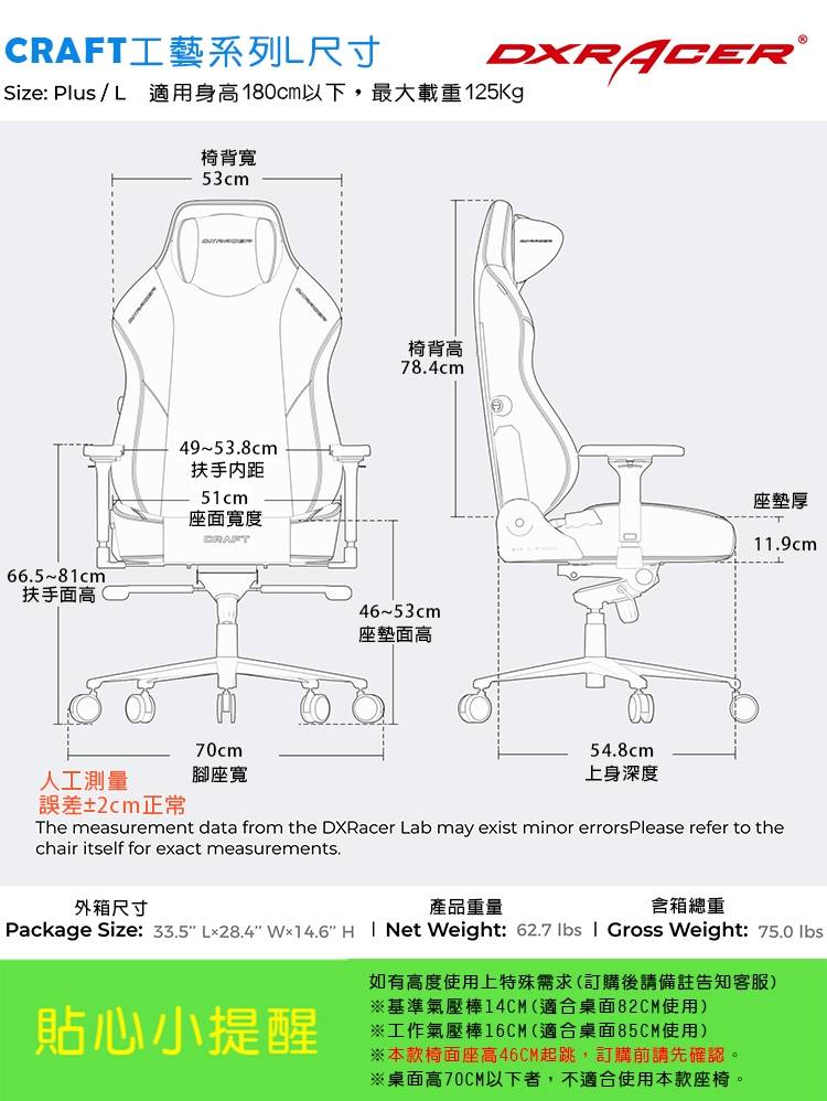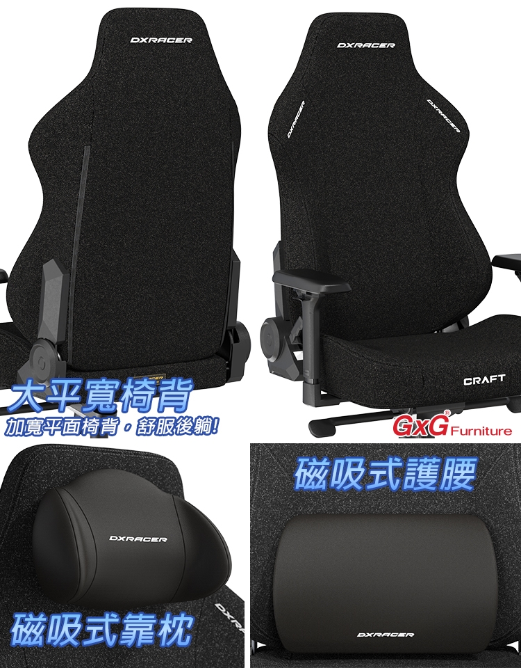 Dxracer Craft 工藝 電競賽車椅 中型L尺寸 (黑色/布面)