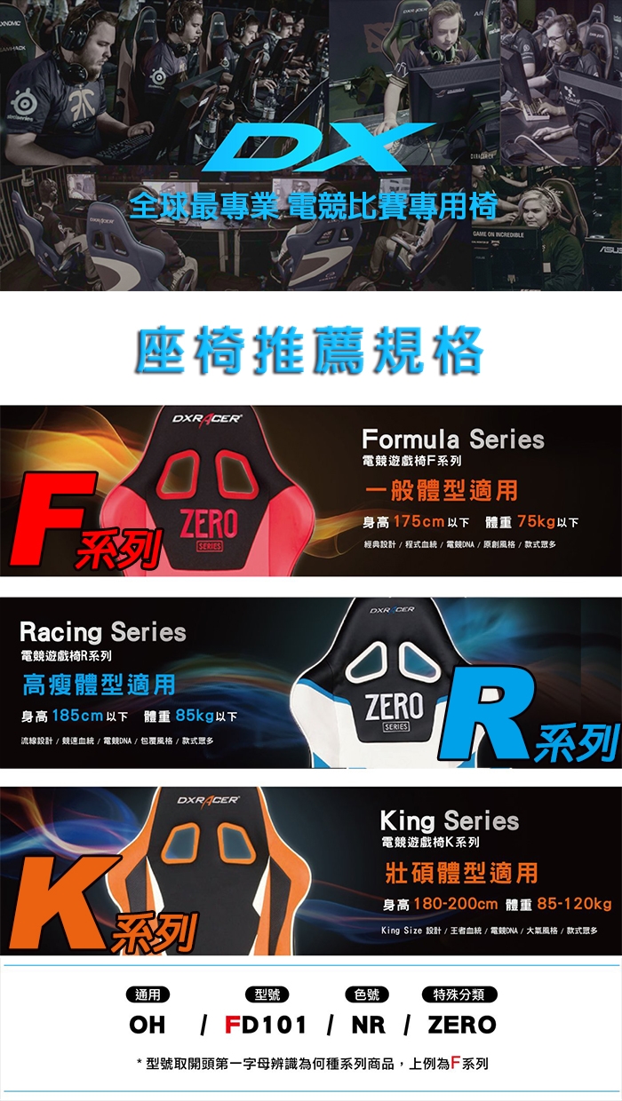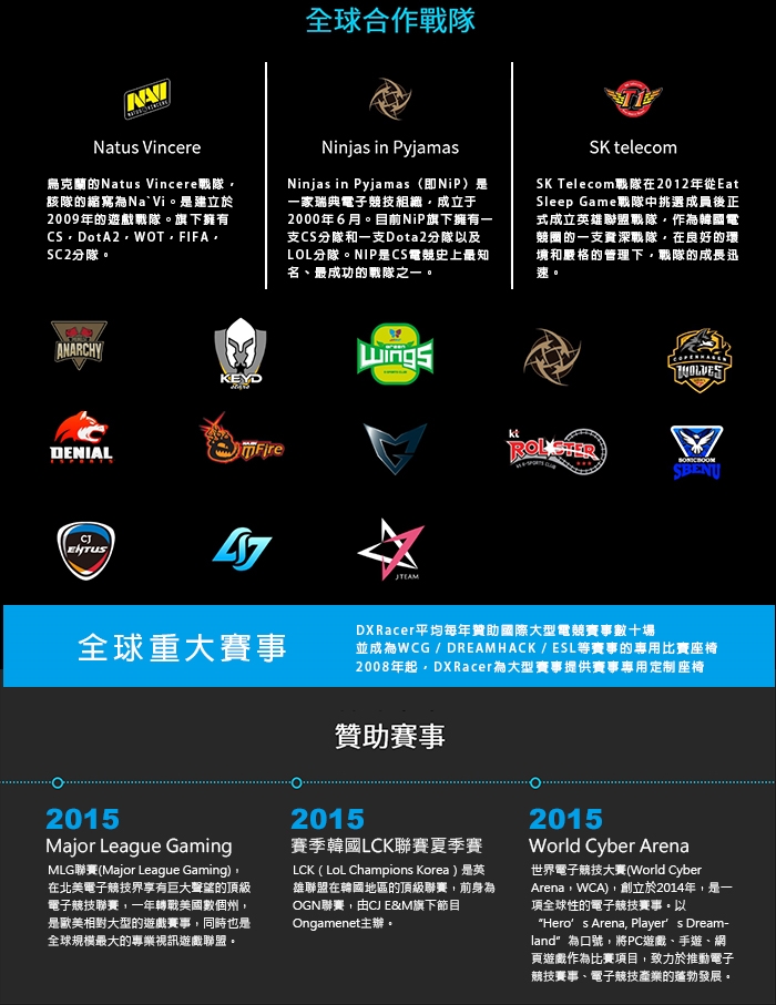 2008年起,DXRacer為大型賽事提供賽事專用定制座椅