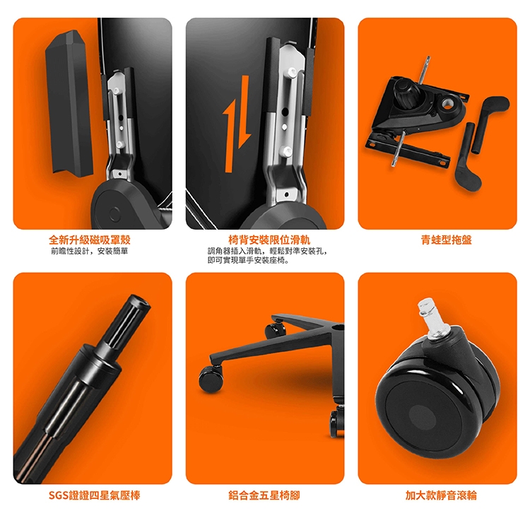 電腦椅透過『氣壓棒』來調整坐墊升降功能,調至個人最舒適座面高度,本款為4級頂級氣壓棒,通過國際安全認證,不會有氣爆、爆炸的問題。