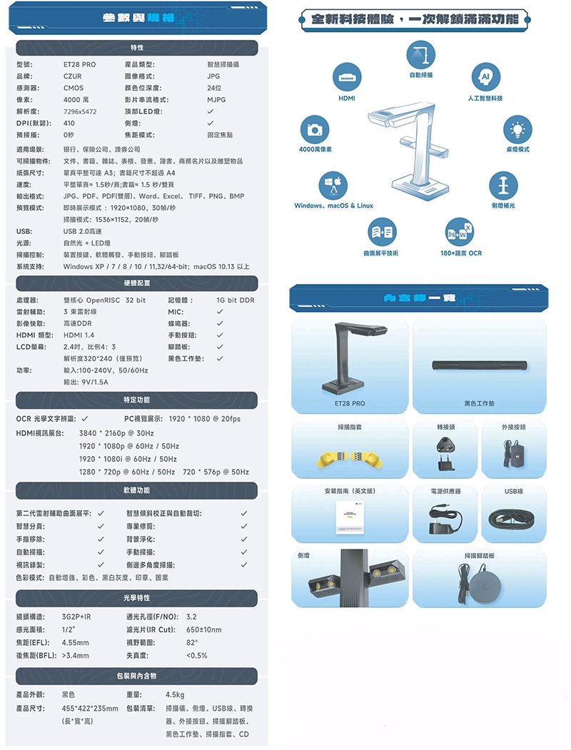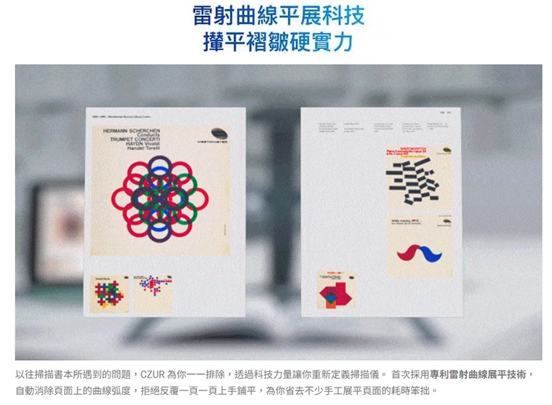 首次採用專利雷射曲線展平技術,自動消除頁面上的曲線弧度