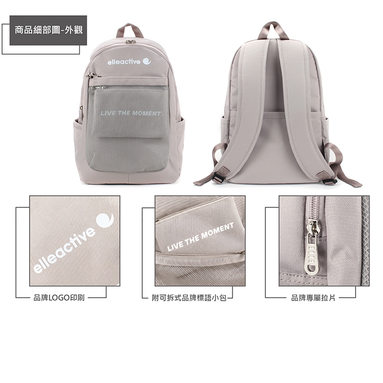 商品品名:【ELLE Active】活力隨行系列-後背包-中-奶茶色