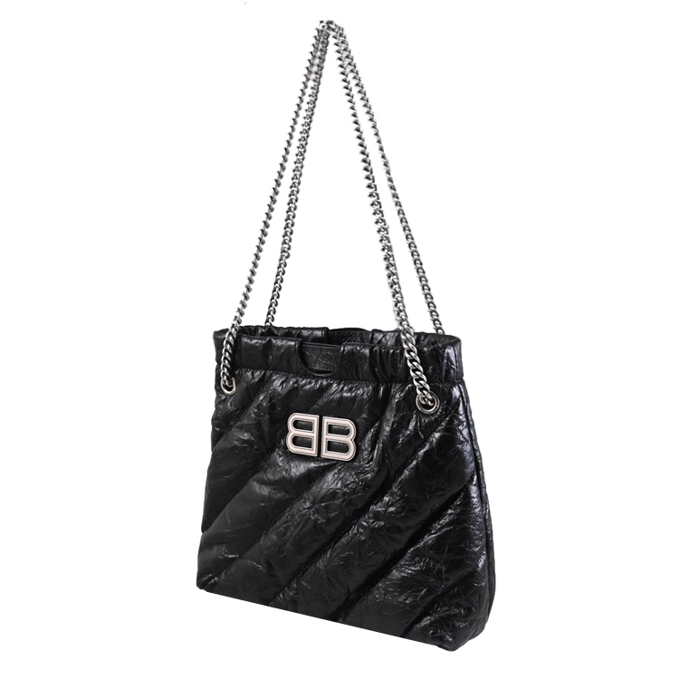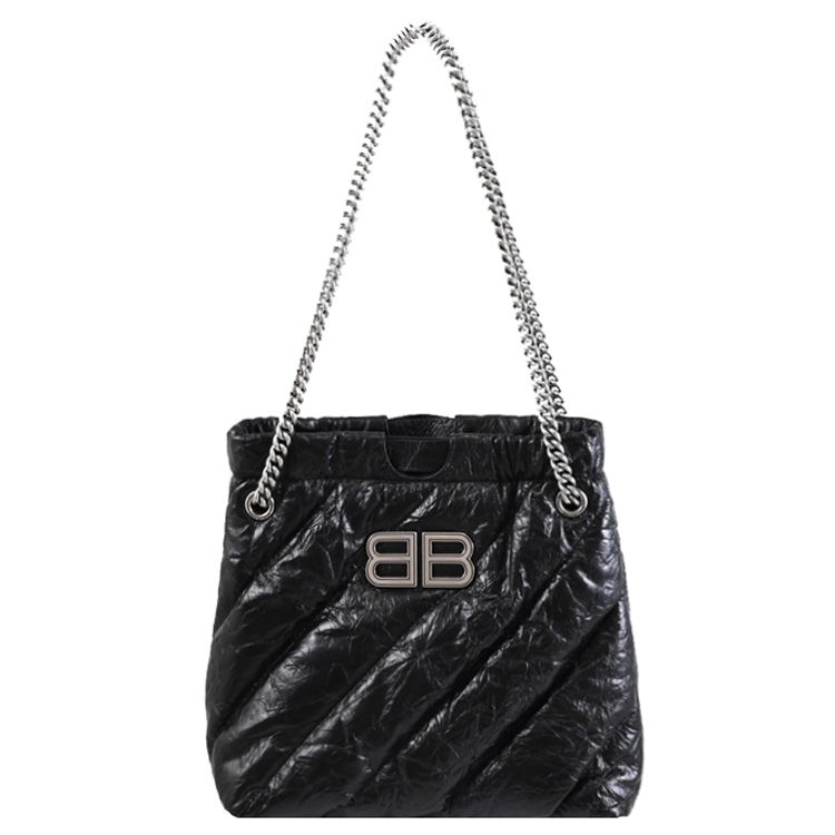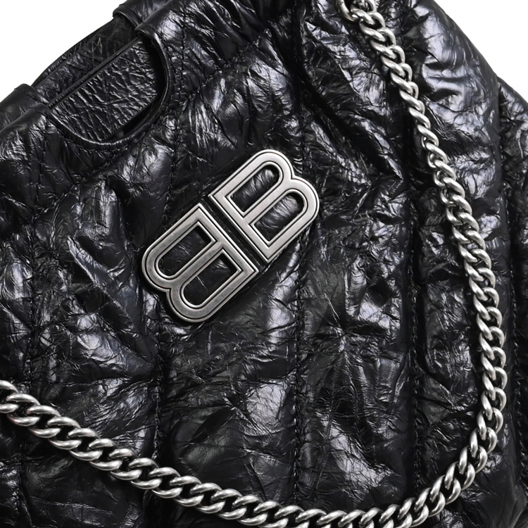 《BALENCIAGA》,深受不少國內外名人青睞的品牌,其魅力在台灣持續燃燒,是許多人踏入名牌世界的第一選擇,熱銷經典款再創新設計,此款CRUSH TOTE,採用揉製小牛皮材質+金屬BB LOGO,內有1貼袋,可放長夾、手機等隨身物品,特殊束口設計,可依個人身形變換肩背或斜背攜帶,顯出低調奢華的質感,都會時尚感。