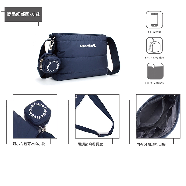 商品品名:【ELLE Active】蓬蓬雲朵系列-側背包/斜背包-星夜藍