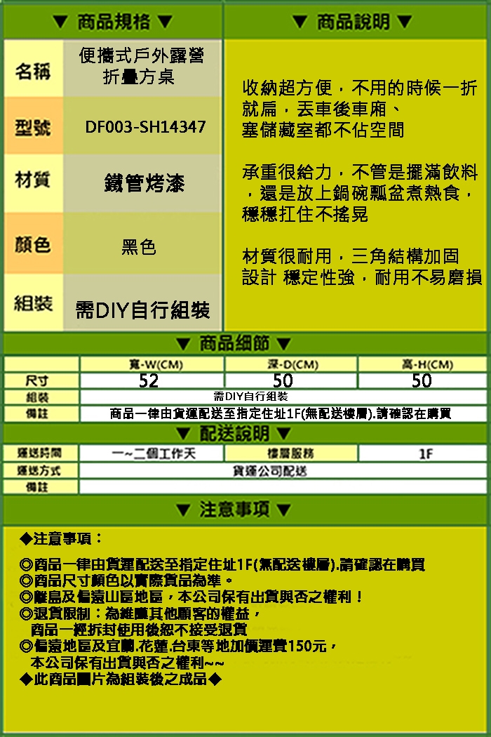 ‧商品名稱:《DFhouse》便攜式戶外露營折疊方桌