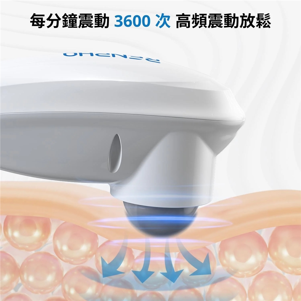 5 種震動按摩模式配合 5 段強度設計,可深層舒緩酸痛組織和肌肉。以每分鐘高頻震動 3600 次,提供迅速緩解及放鬆效果、釋放肌群壓力。