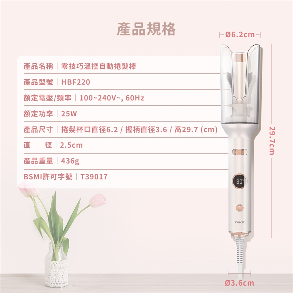 尺寸:捲髮杯口直徑6.2 / 握徑3.6/高29.7 (cm)
