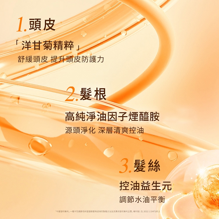 功效:精研控油配方,溫和淨澈頭皮,保持髮絲蓬鬆豐盈,呈現輕盈柔順秀髮。