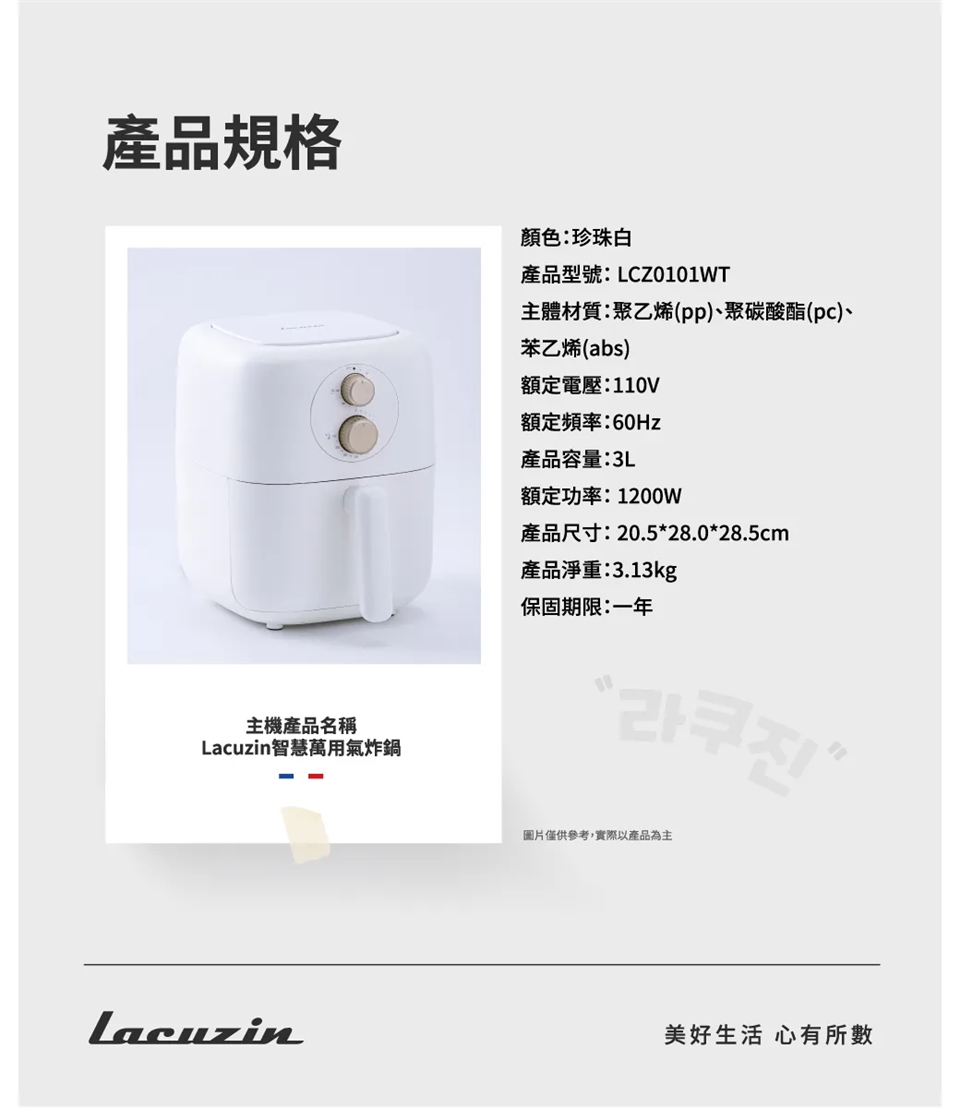 .品 名:Lacuzin 智慧萬用氣炸鍋