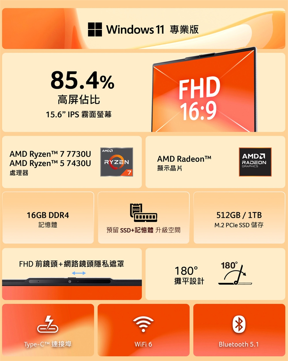 Type-C 支援影像傳輸:Y (only 1 type-c Port)