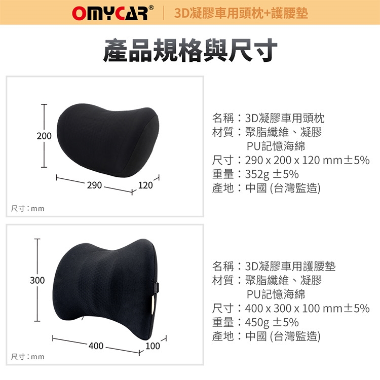 品名:【OMyCar】3D凝膠車用頭枕+護腰墊