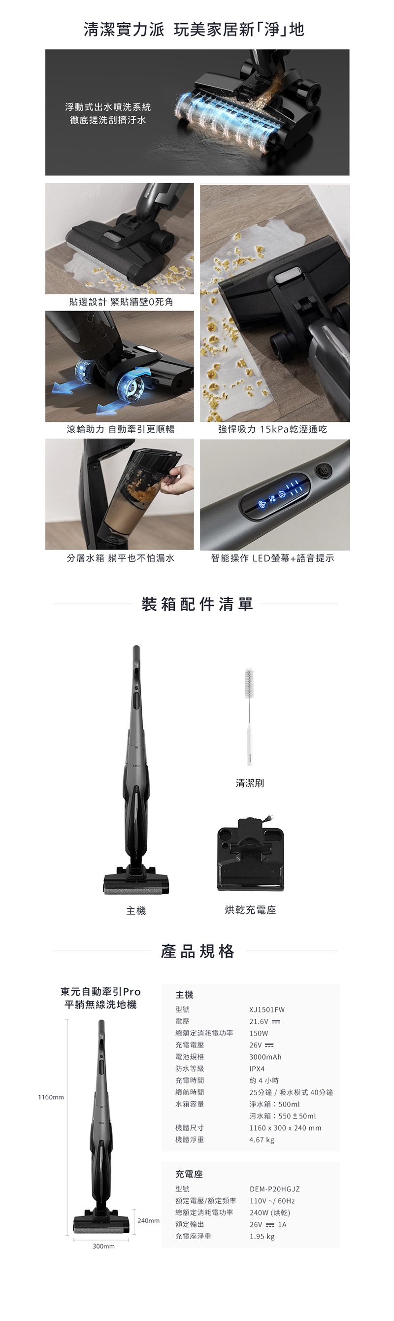 ◆15KPA強勁吸力,不論乾溼都能快速清潔,效率加倍。