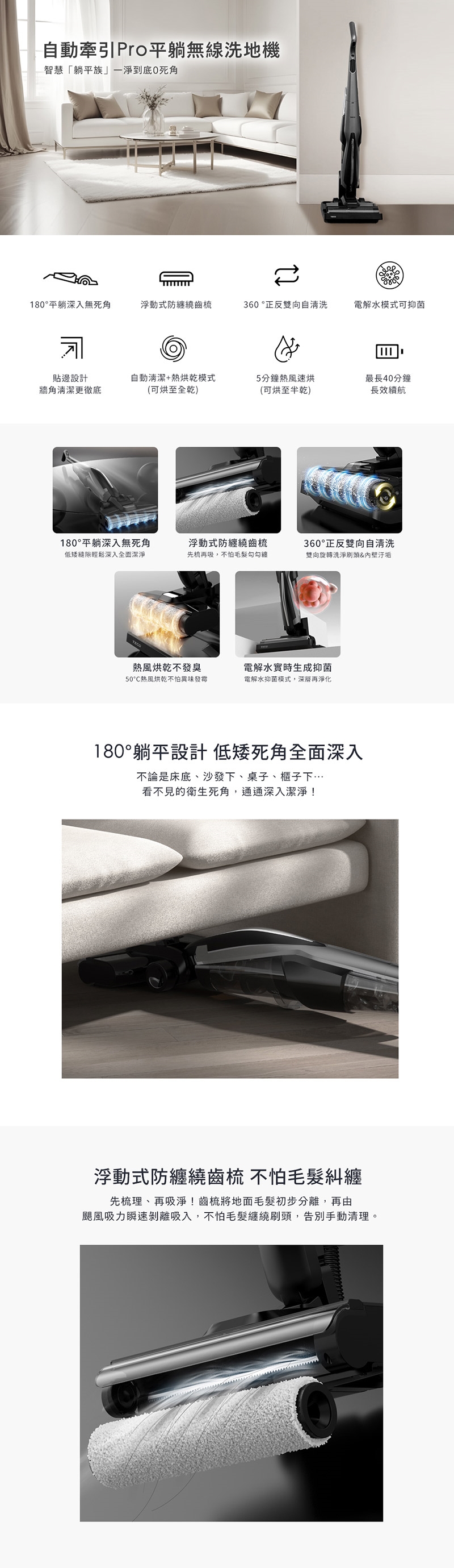 ◆10cm刷頭極致纖薄,180度平躺深入無死角,低矮縫隙輕鬆深入清潔。