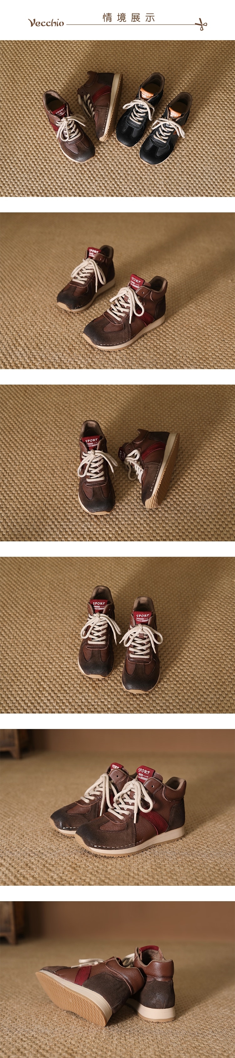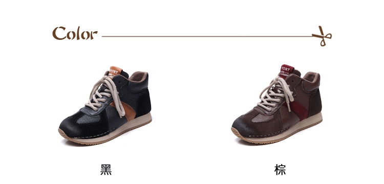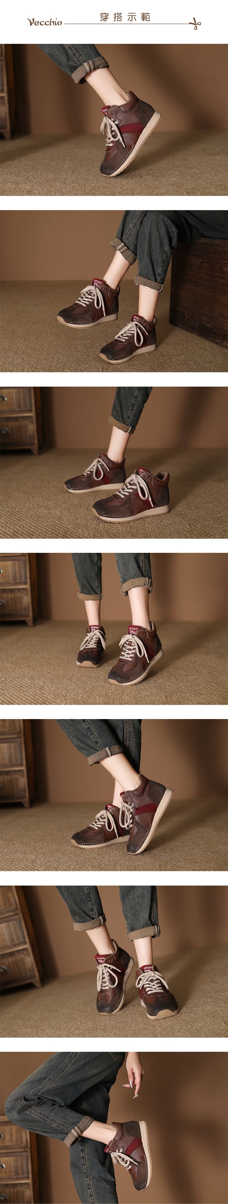 【VECCHIO】真皮拼接高筒運動鞋/真皮頭層牛皮復古異材質拼接高筒休閒運動鞋 女鞋 棕