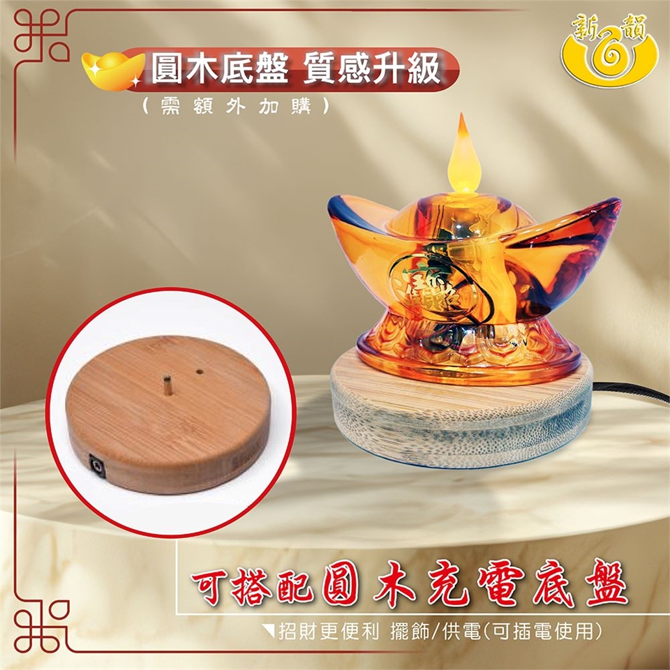 雙重模式: 亦可搭配專屬圓木底座插電使用,滿足神明廳或商業空間長時點亮的需求。