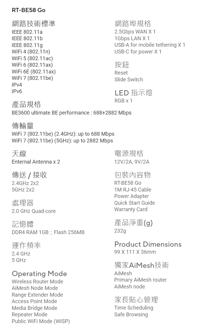 ※以上規格資料若有任何錯誤,以原廠所公佈資料為準。