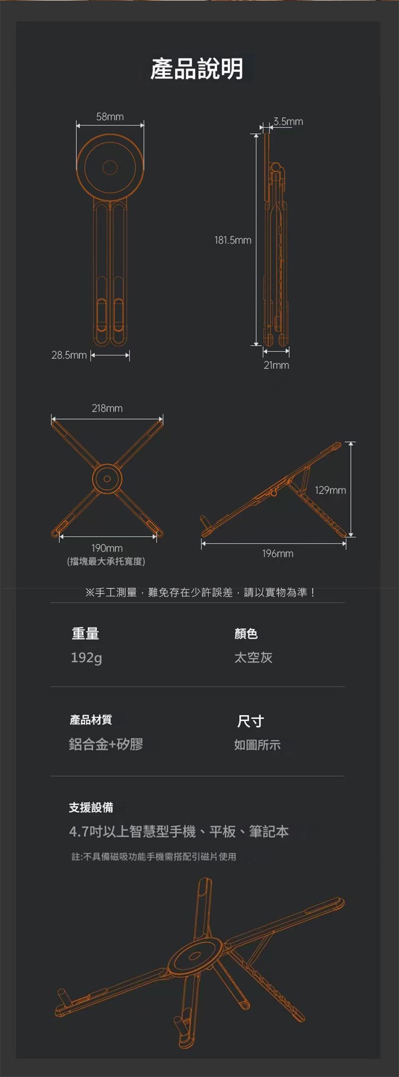 ◆支援:4.7吋以上智慧型手機/平板/筆記本