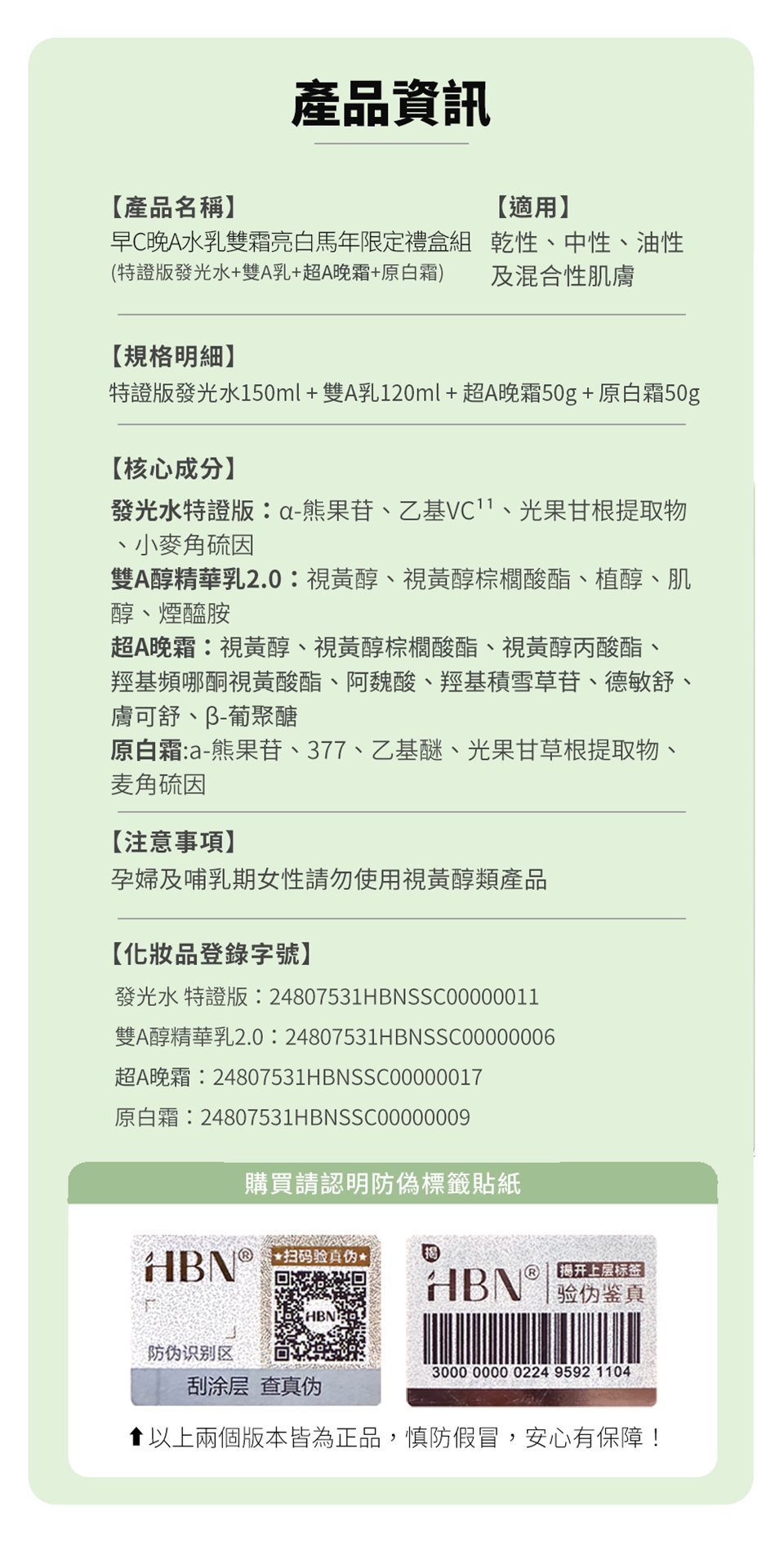 1. 孕期或哺乳期請勿使用視黃醇類產品。