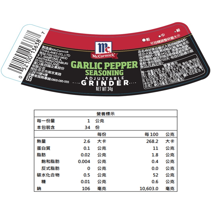 ◆融合了兩種人人都愛的口味——大蒜和黑胡椒。它是烤雞、漢堡或牛排、馬鈴薯、義大利麵醬、雞蛋或魚類的理想搭配