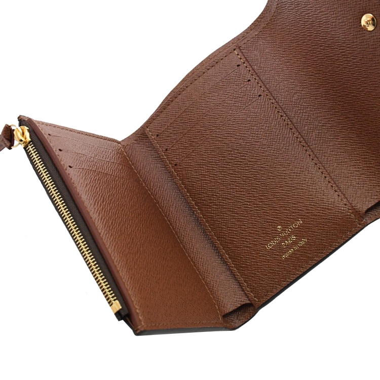 LV 這款PF.Victorine短夾,採用Monogram經典花紋塗層帆布外層,搭配鮮艷的彩色牛皮襯裡,整體女性化而富功能性,這款錢包外形小巧,內有1鈔票夾+6信用卡夾+2內裡+1拉鍊袋,可輕易放放置較小的包款,整體設計既時尚又富女性氣息,盡顯路易威登精湛工藝與對細節的一絲不苟,流滿都會時尚味道,是款時尚的單品配件。