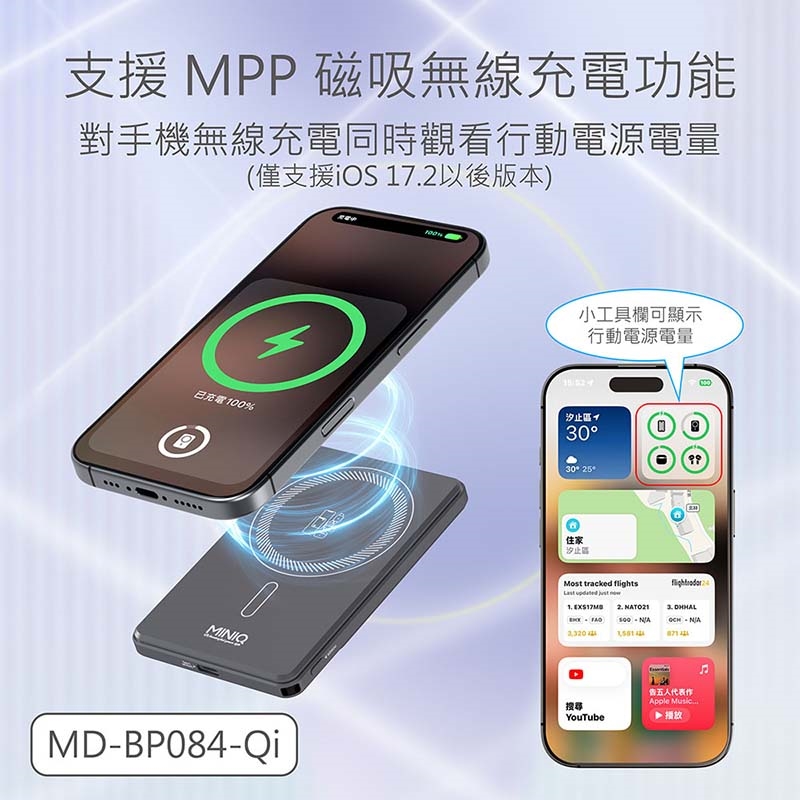 注意:支援Apple MagSafe 自動對位吸附充電(需搭配裸機或支援Magsafe手機殼使用)