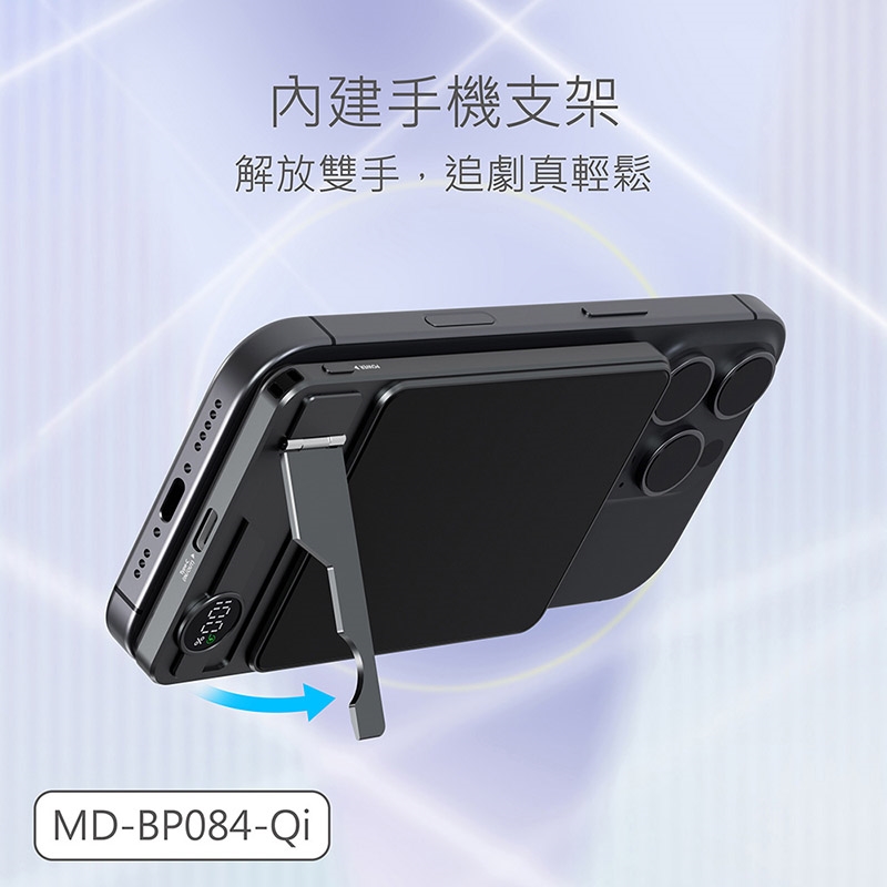 ◎ 此行動電源還帶有「手機支架」,讓你隨時解放雙手追劇、滑社群,適合常外出、多裝置充電需求的使用者。