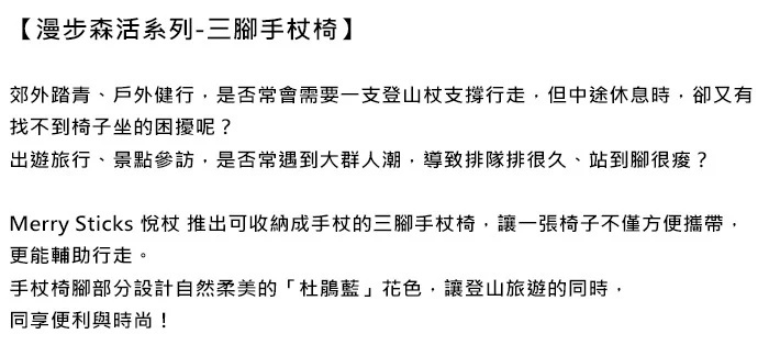 ◆ 手杖結構:漫步森活系列-三腳手杖椅