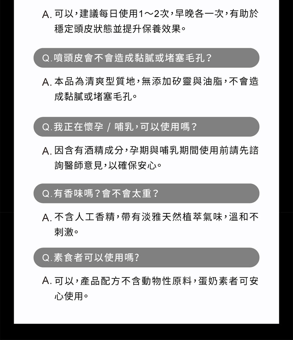 * 使用本產品後,請避免以熱風直吹頭皮,以避免影響成分活性。