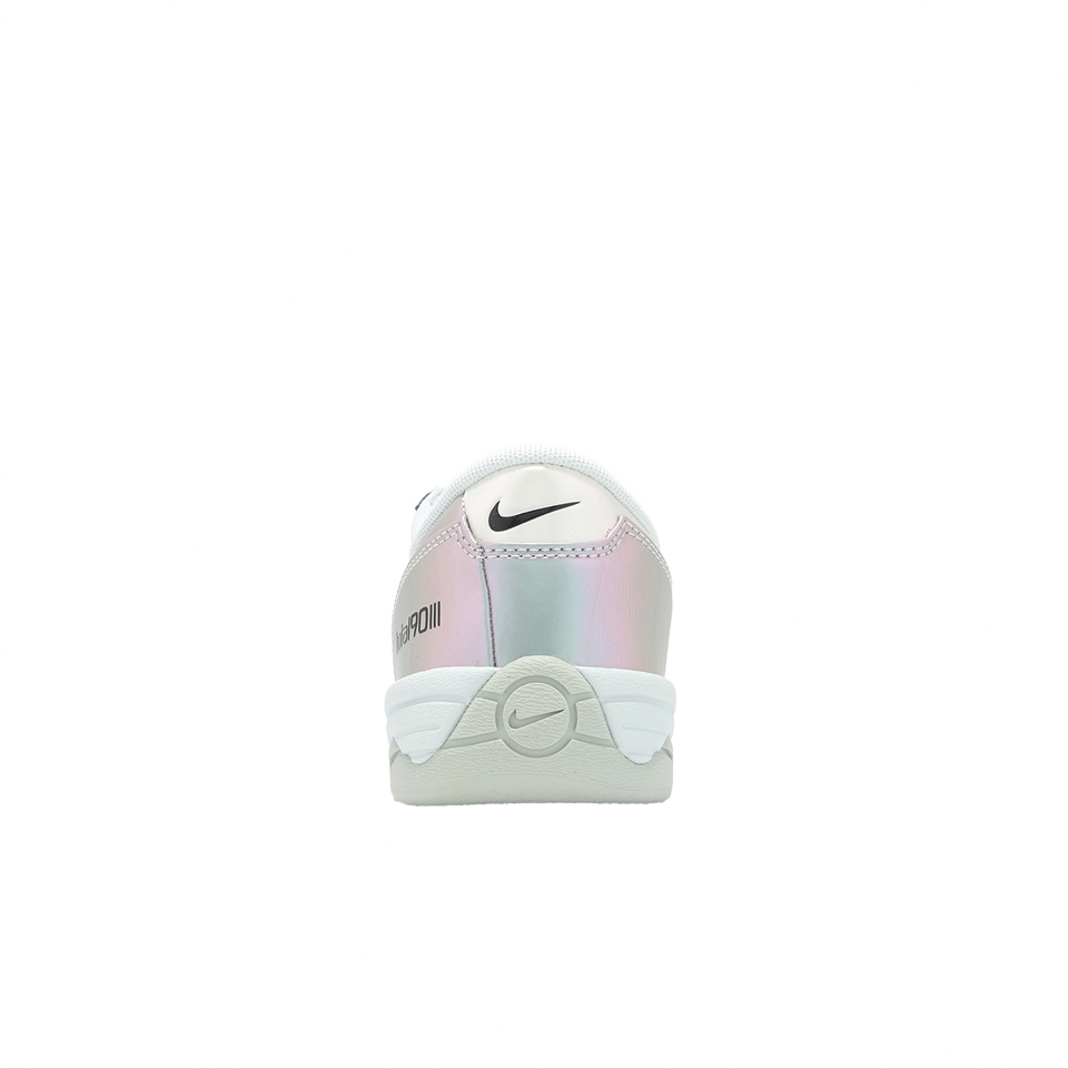 * 新作配備金屬銀色鞋身,釋放出反光般的虹彩光澤,並以黑色點綴側身與鞋頭 Swoosh、圓形 90 內側標誌,以及鞋舌、腳踝與後跟標記。