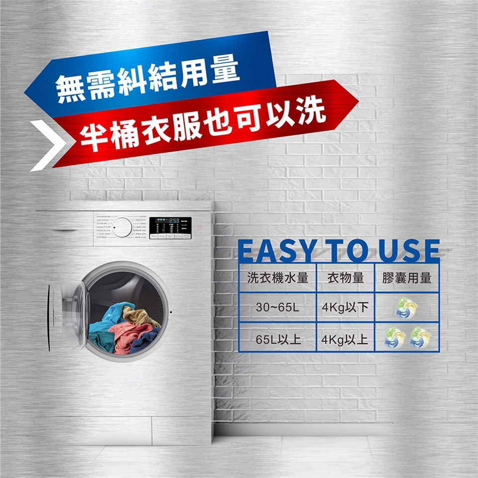 4kg以下衣物 1顆洗衣膠囊