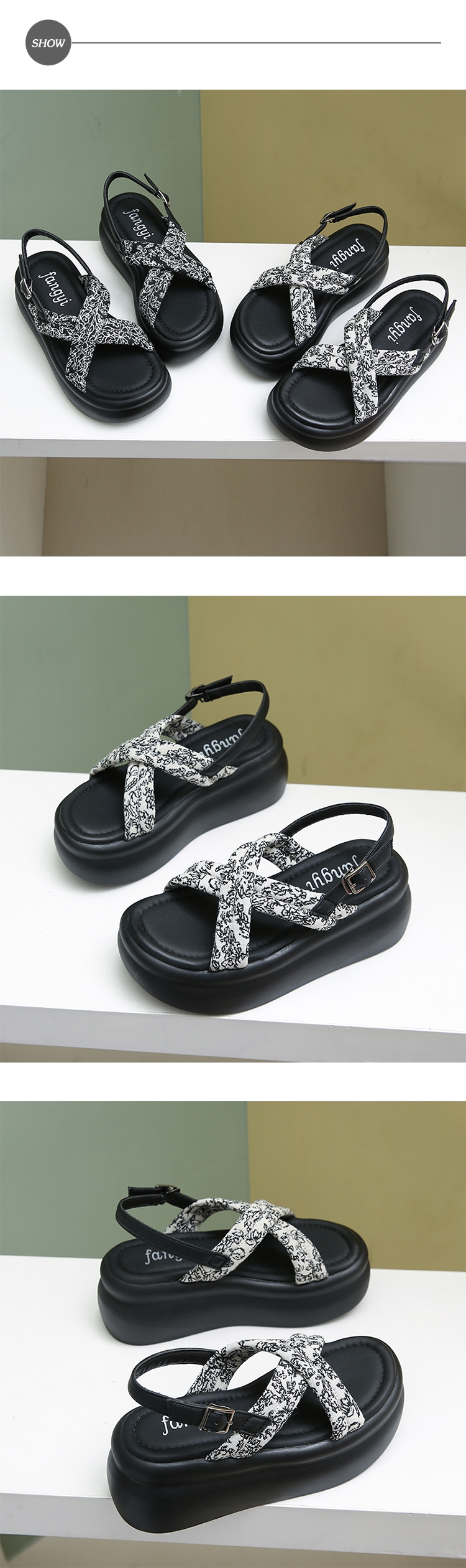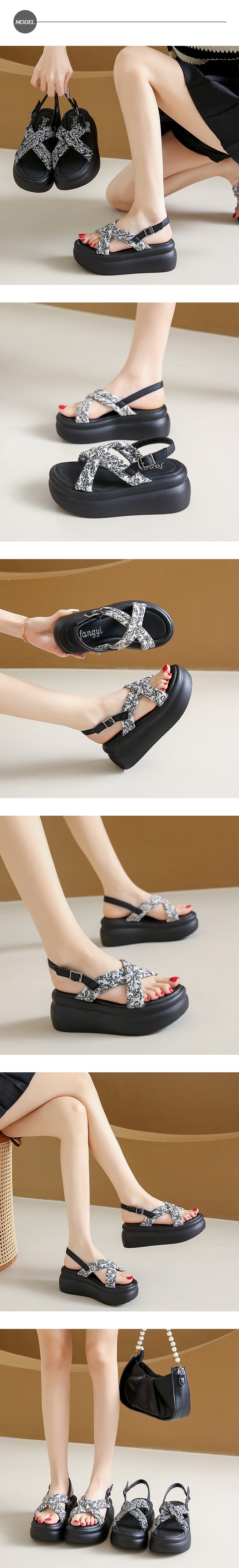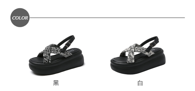 【HEDY】圖騰布面鬆糕厚底涼鞋/復古變形蟲圖騰交叉布面鬆糕厚底涼鞋 女鞋 白