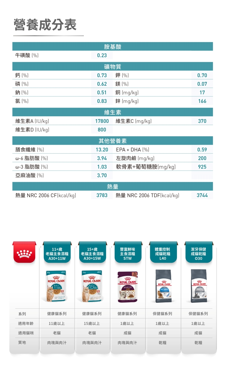 寵物的營養需求會隨著年齡增長而改變,請於寵物健檢時諮詢醫師相關資訊。