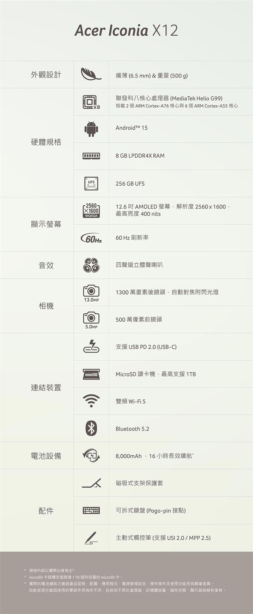 2.活動時間內購買Iconia Tab V/A系列指定型號,登錄即送【ONPRO 48W GaN 充電頭 (市價$699元)】。