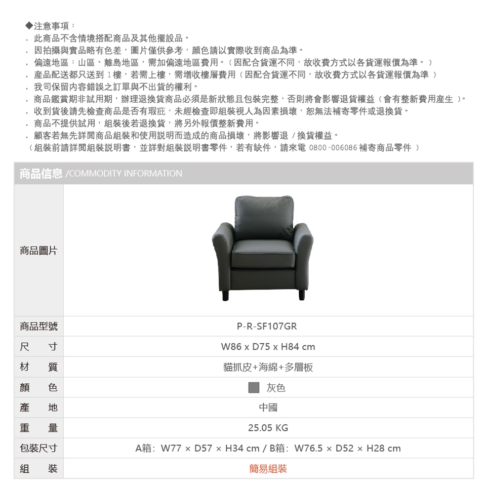 ✿ 同款式另有雙人、三人沙發可供選購 ✿