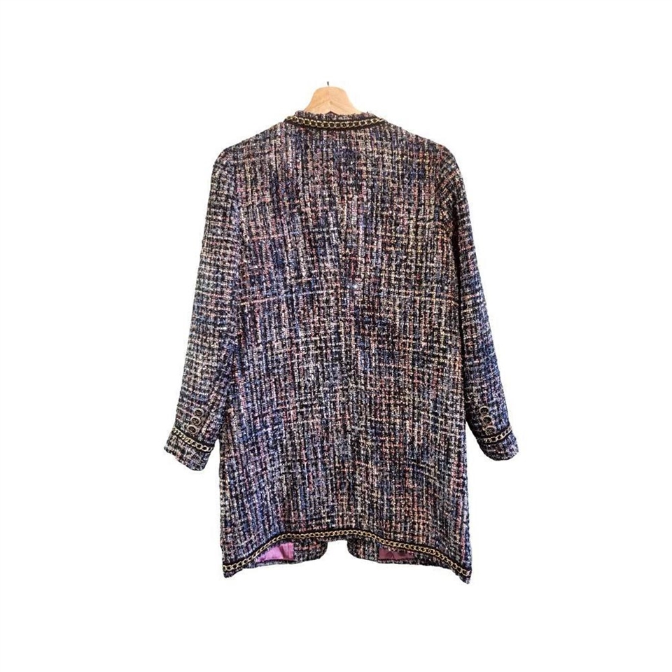 大衣整體採用修身中長版剪裁,延伸身形線條,肩部及腰部比例優雅,適合搭配各類裙款、褲裝或套裝。前胸及口袋處搭配香奈兒標誌性鈕扣,或金屬、珍珠裝飾,細節精緻而不浮誇。無論作為通勤外套、正式場合或日常穿搭,皆能展現法式高級精品氣質。