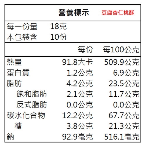 過敏源:本產品含麩質之穀物(小麥)、大豆、奶粉、杏仁,不適合其過敏體質者食用。