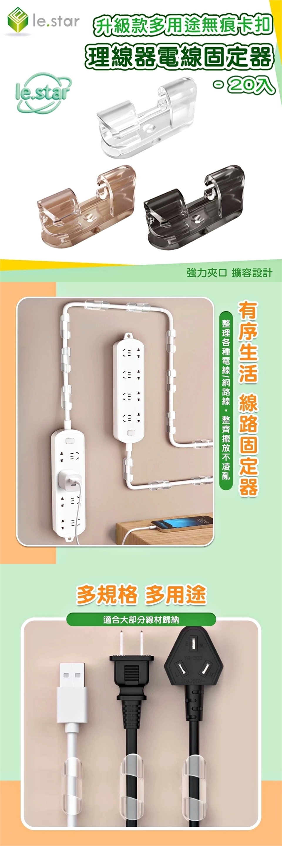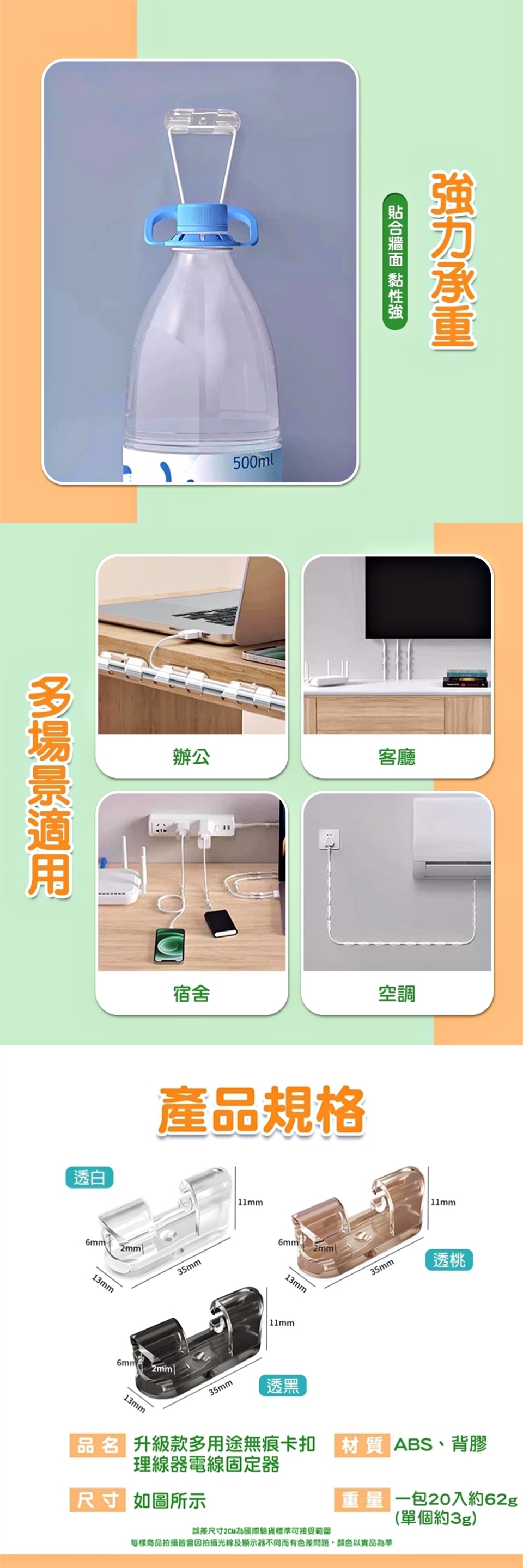 品名:升級款多用途無痕卡扣理線器/電線固定器20入
