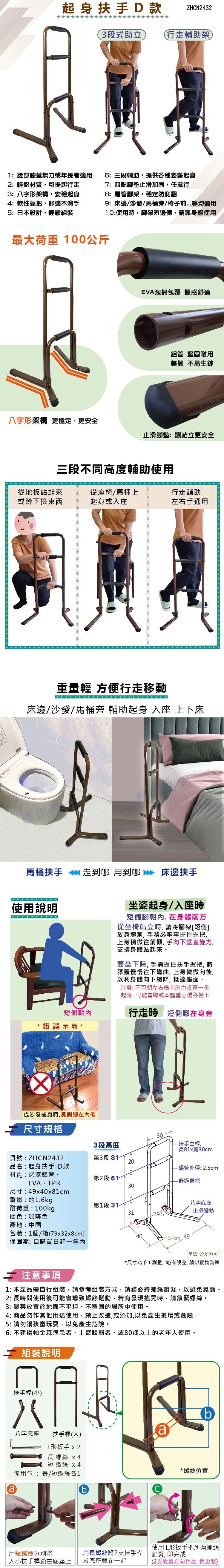 ◆ 三段不同高度輔助 提供各種姿勢起身
