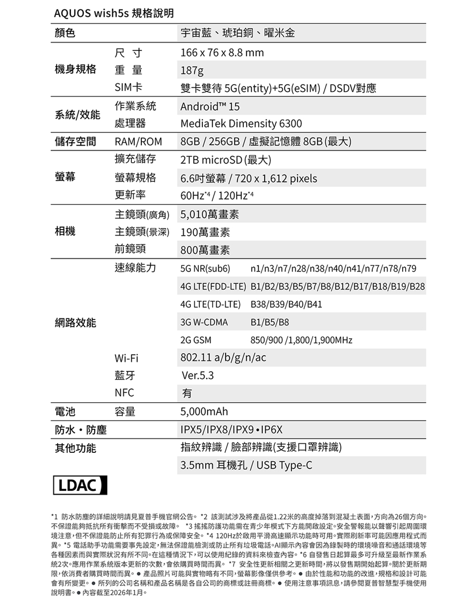 凡購買 SHARP AQUOS wish5s 並於官網完成保固登錄,即贈送