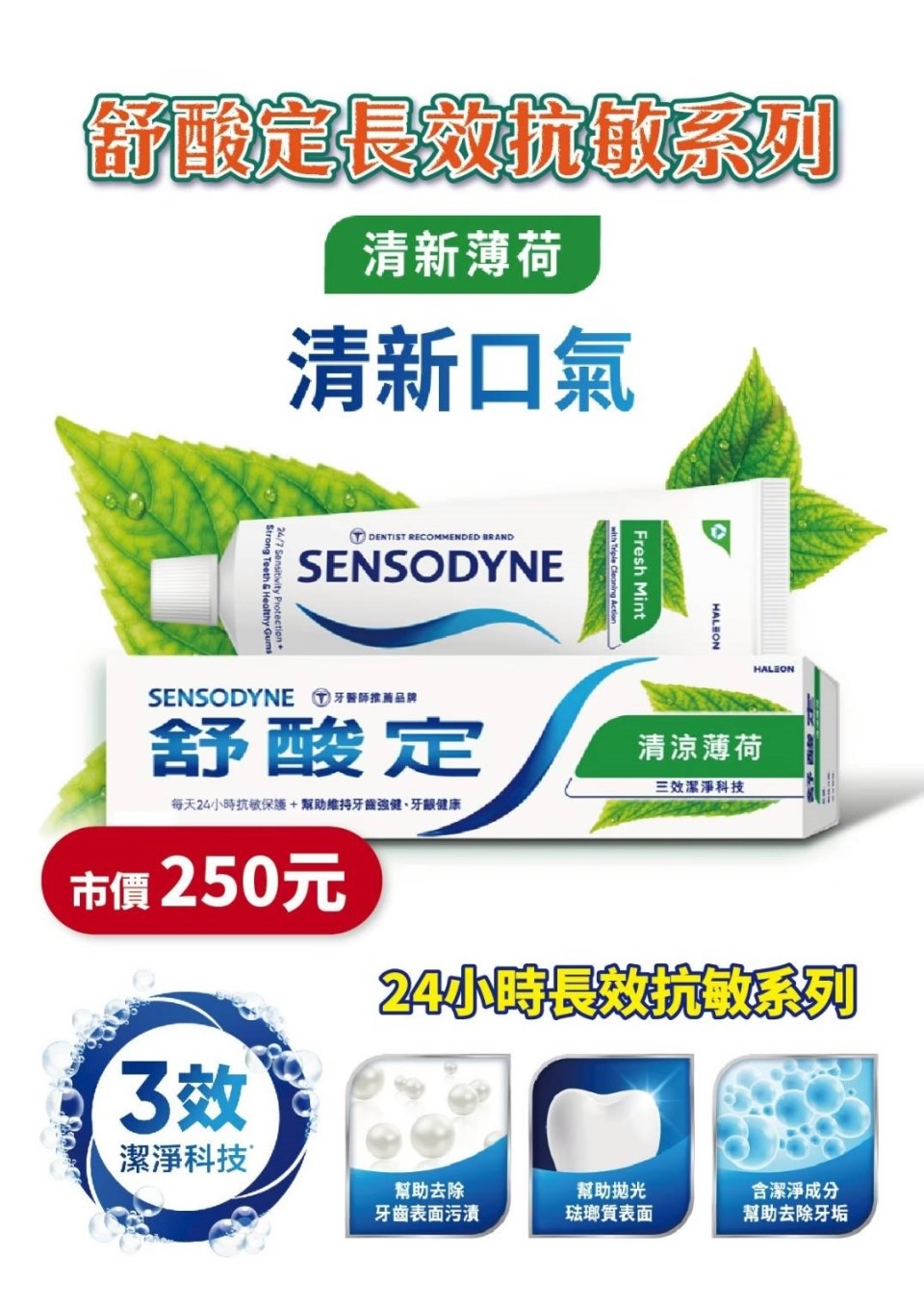 舒酸定長效抗敏牙膏清涼薄荷160克 X10