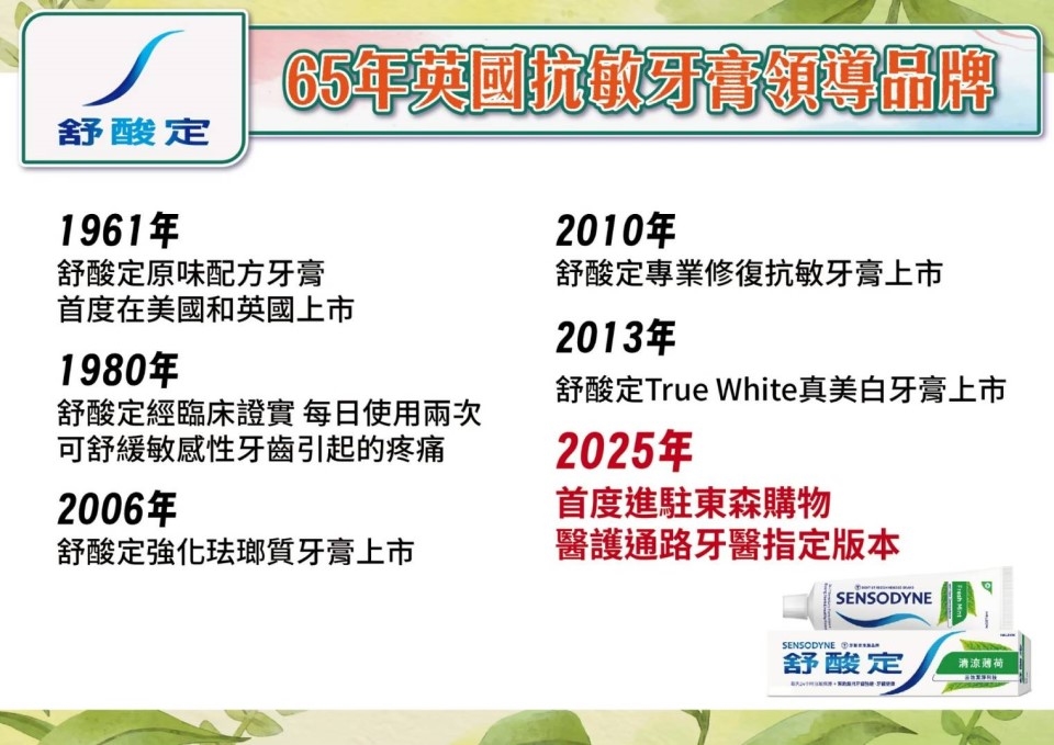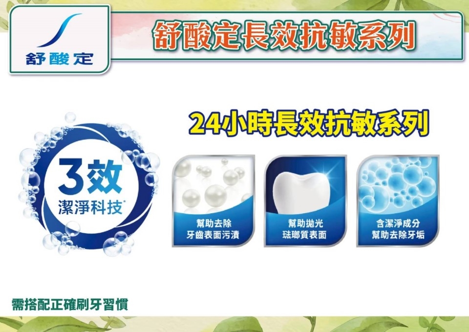 敏感性牙齒可能代表有潛在的牙齒問題,需及時照護,若敏感問題持續或惡化,請諮詢牙醫生。若產生刺激反應,請停止使用產品。若口腔或面部有腫脹現象,請停止使用產品,並立即諮詢您的牙醫或醫生。不適用於12歲以下兒童,或請諮詢牙醫或醫師。請儲存於兒童無法取得之處。產品外盒如未完整密封請勿使用。使用後請關緊管蓋保持產品乾燥。