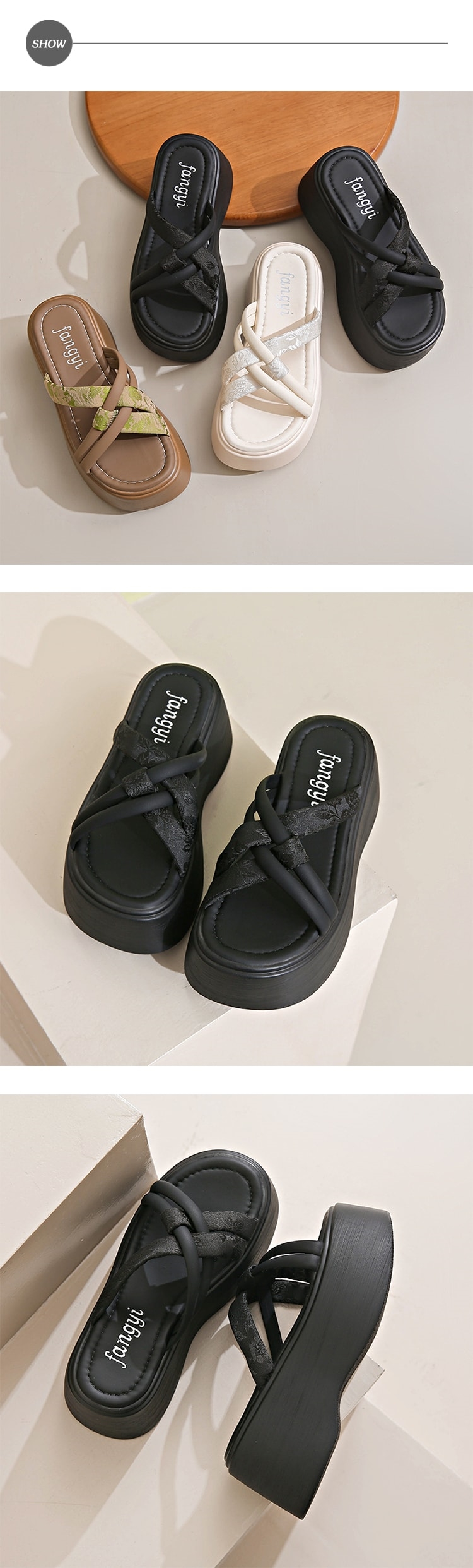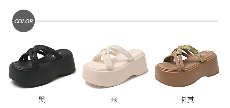 【HMH】花布交叉輕量厚底拖鞋/典雅復古花布交叉線條拼接輕量鬆糕厚底拖鞋 女鞋 黑