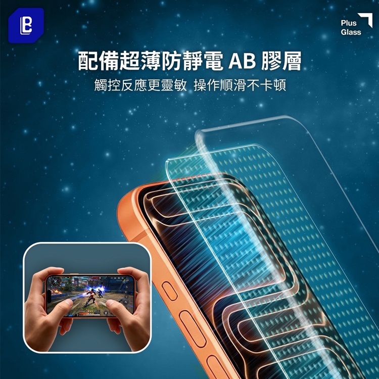 高鋁鋼化玻璃抗摔力升級,搭配超薄防靜電 AB 膠,觸控順滑不卡頓。